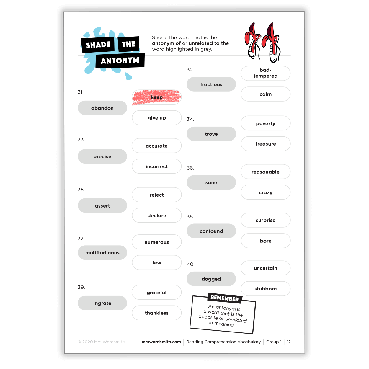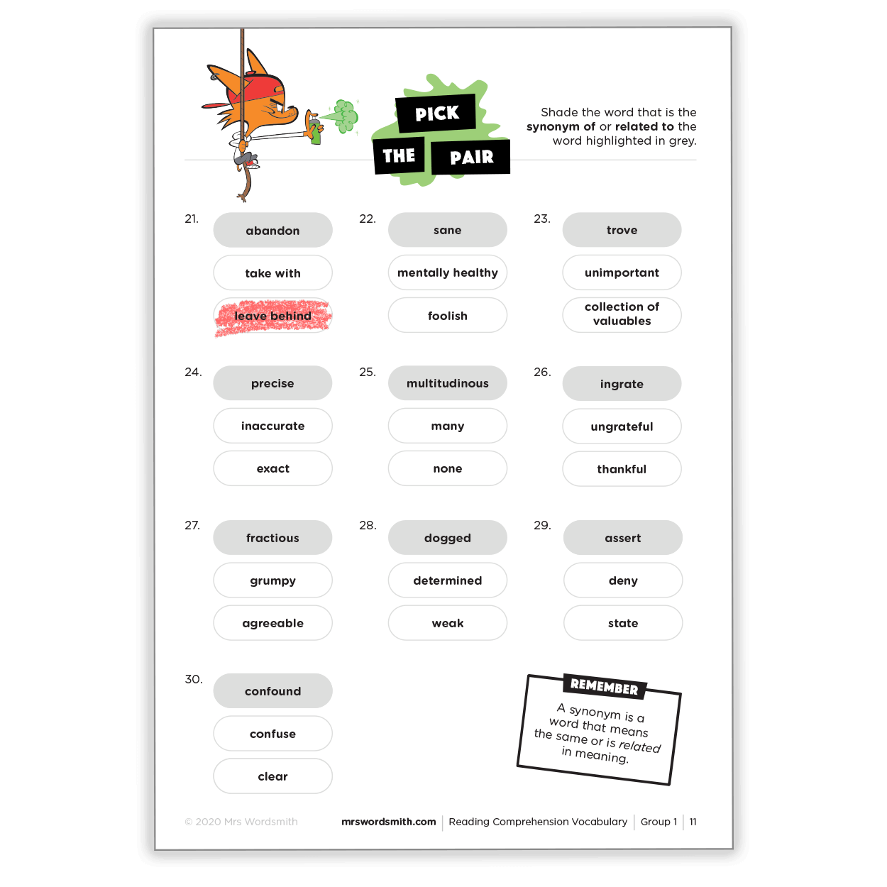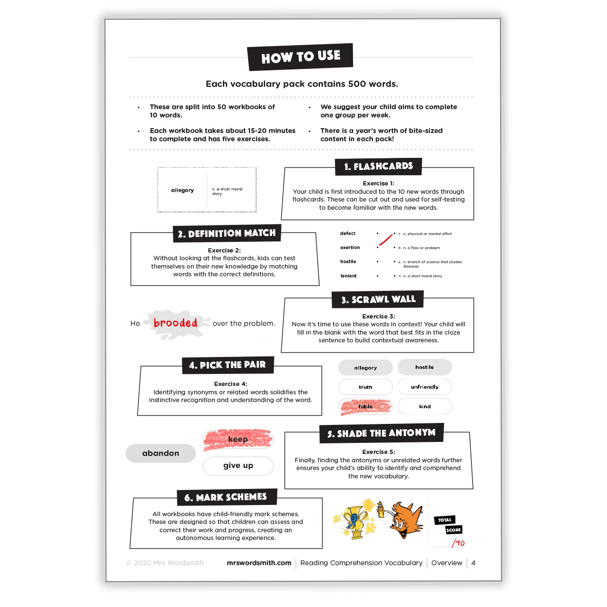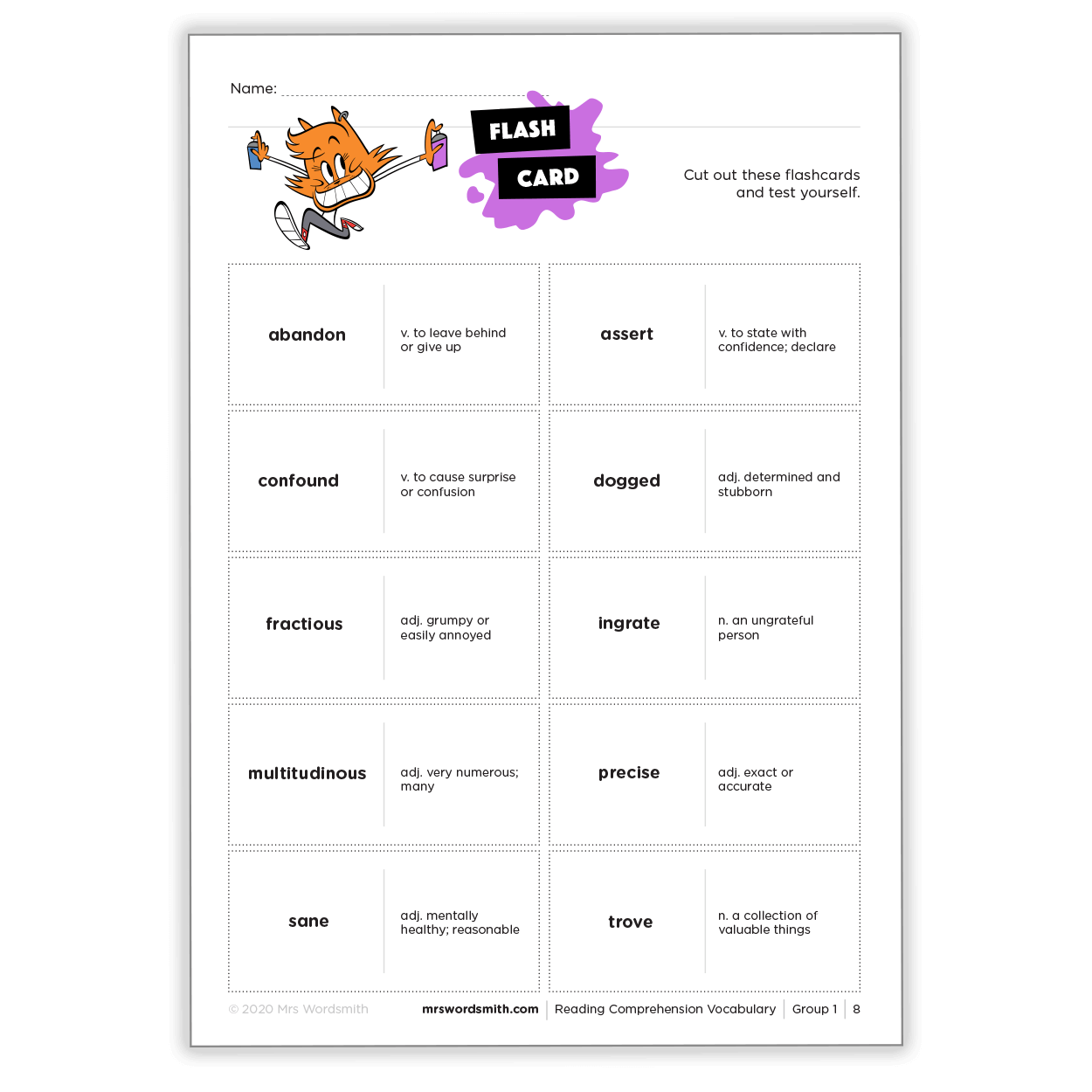 That last one's almost there – it's Reading Comprehension Vocabulary! Including 500 essential vocabulary words split into 50 printable activity packs, this workbook was developed with assessment experts to help you ace exams.