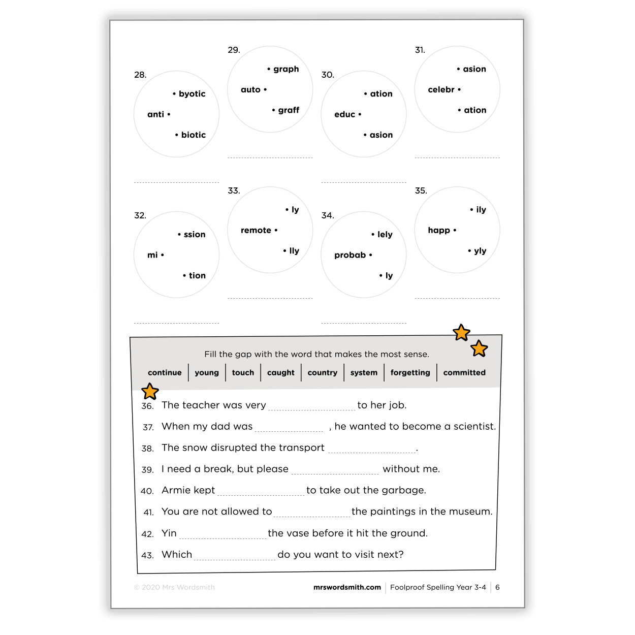 Knock out your spelling bee opponents with these mixed practice sheets, which review the spelling patterns learned in Spelling Targeted Practice Grade 3. These printable practice worksheets are easy to use and include answer sheets, so that future world-champion spellers can get experience working independently and at their own pace.For ages 8-9