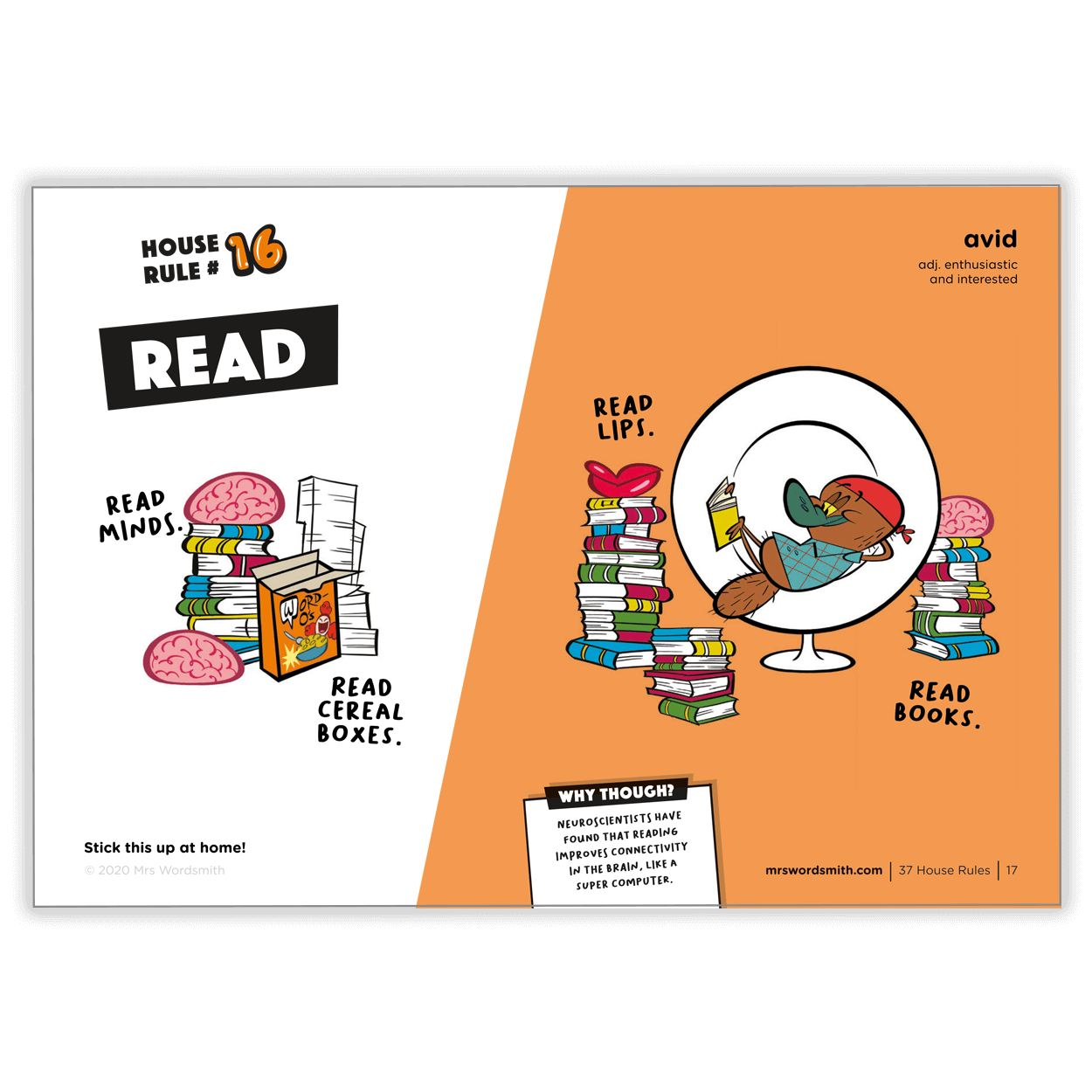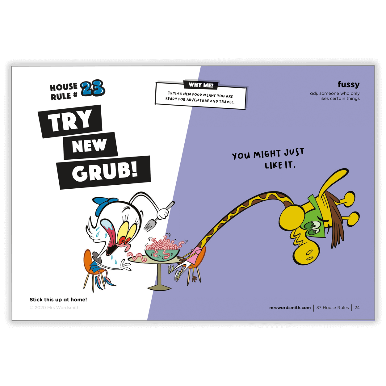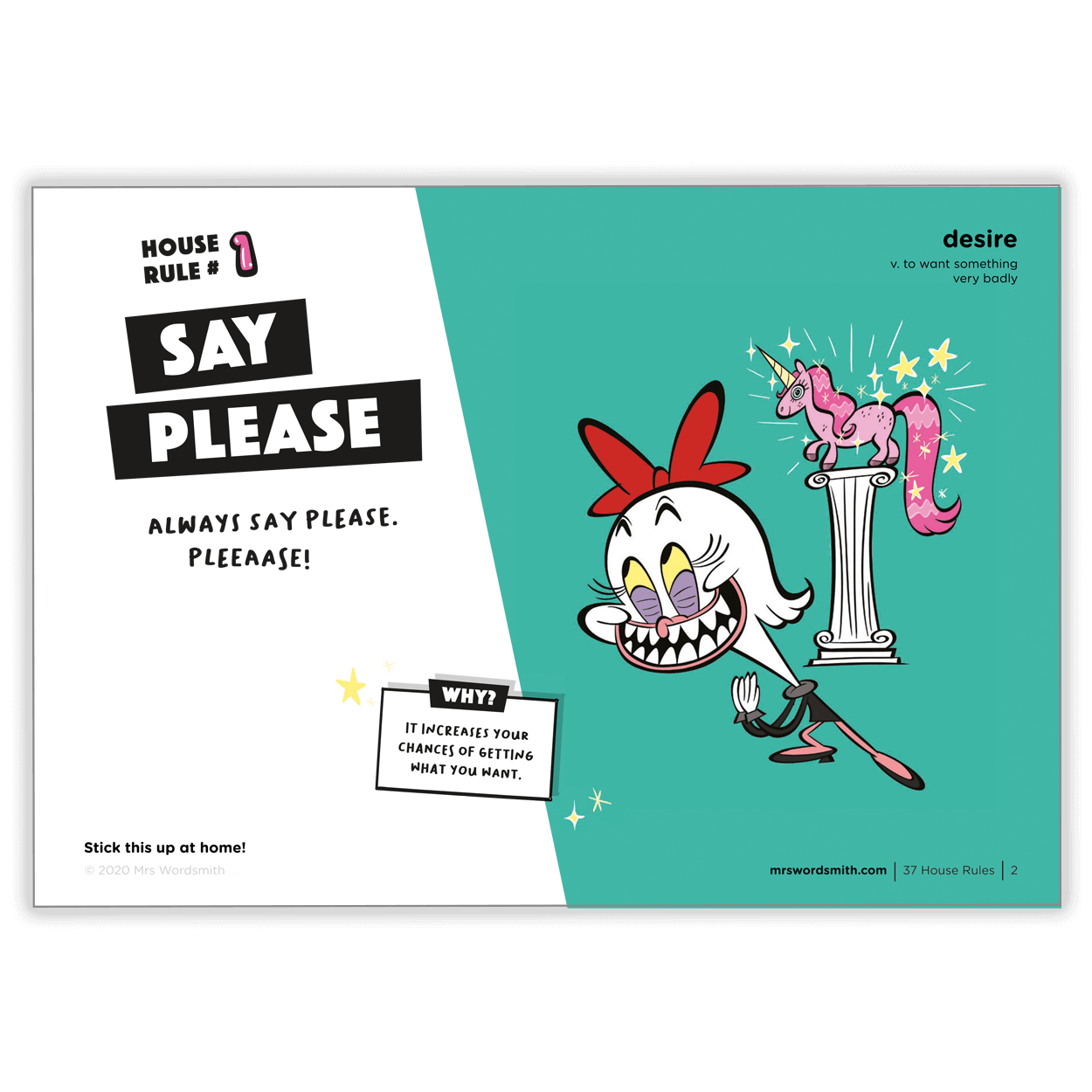 "Ugh, but why?" is a question that has plagued households for millennia.Tidy up. "Why?"Say thank you. "Why?"Flush the toilet. "Why?"Mrs Wordsmith's 37 House Rules is the hilarious handbook every family needs to answer that age-old question. Bringing essential house rules to life with hilarious illustrations – say goodbye to tantrums and hello to a happy, helpful household.For ages 5-10