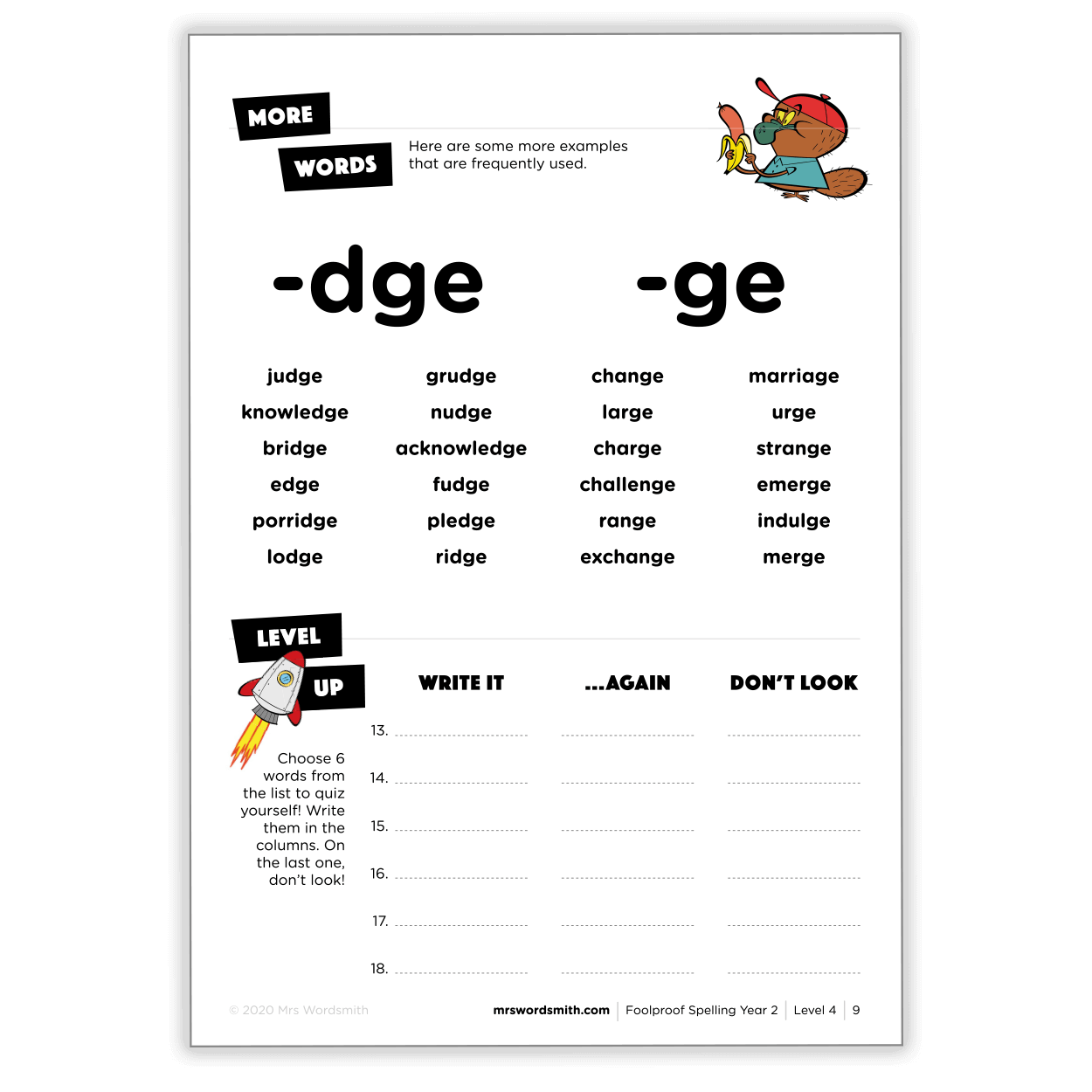 Most snakes think they can only say words beginning with "s", like ssssoup, ssssalad, or ssssalmonella. But this printable workbook proves otherwise. Did you know "c" can sometimes make an "s" sound too? Like city, cinema, or circle!Divided into bite-sized packets and packed with engaging character illustrations, these targeted practice papers help boost retention. They cover all the essential spelling patterns needed for Grade 2 or to boost a snake's confidence. For ages 7-8