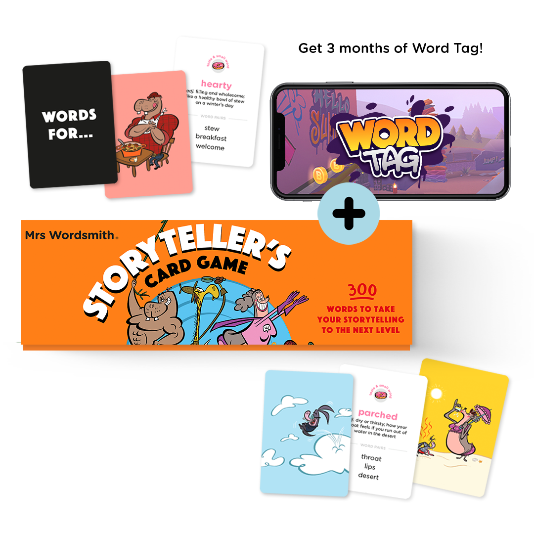 Storyteller's card game Boost kids' creative writing vocabulary. Contains 300 word cards and 200 story cards. Endlessly replayable for the whole family! Ages 7,8,9,10,11