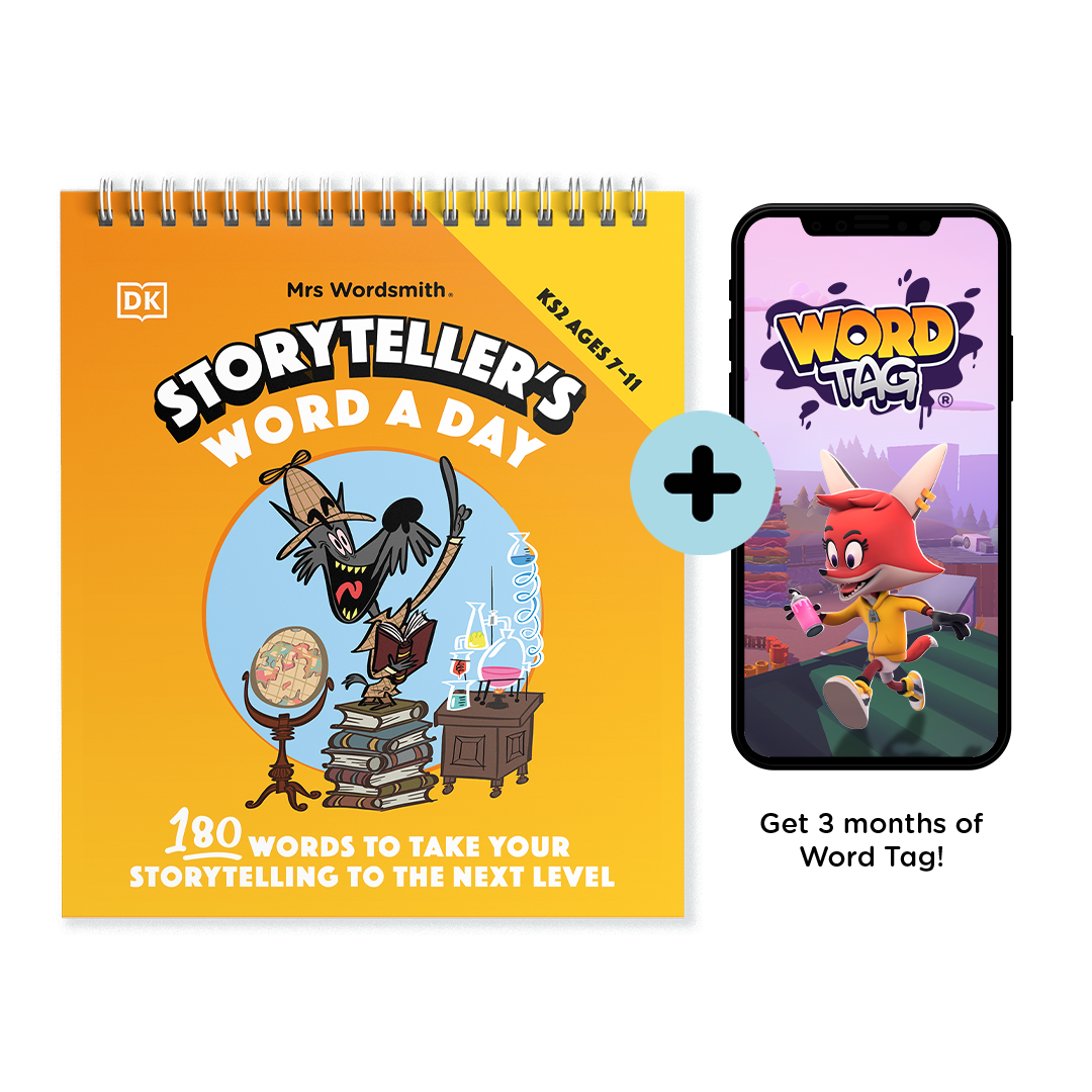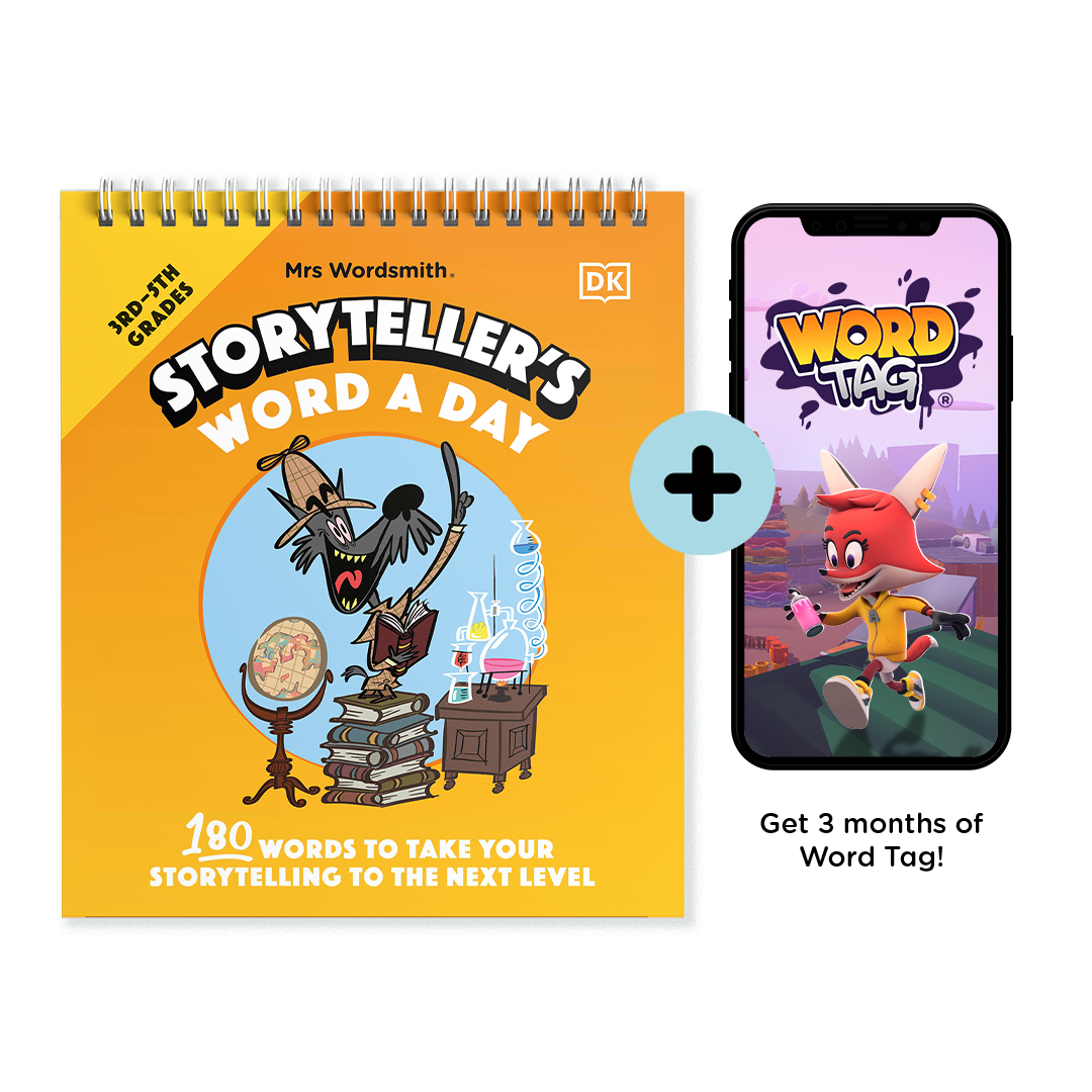 Storyteller's Word a Day boosts vocabulary with 180 hilariously illustrated words. Discover a new illustrated word every day and tell better stories. Ages 7, 8, 9, 10 ,11